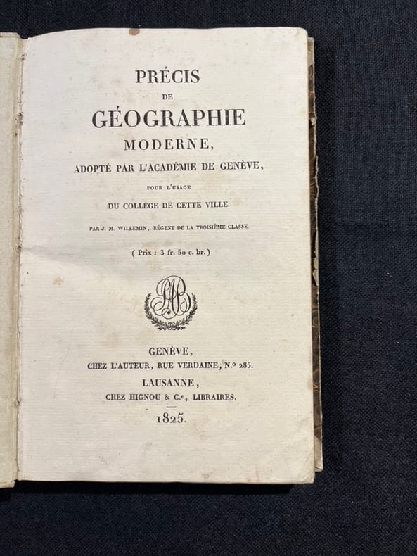 Genève, Lausanne, chez l'auteur, chez Hignou & Cie, 1825. In-8 de VI, [pour VIII,manque le faux titre]-287-[1]pages, demi-vélin blanc à coins, dos muet. Marque de cire aux contre-plats.