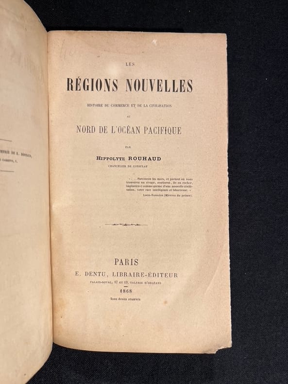 Édition originale. Les américains et les russes au Japon, les îles Sandwiches, l'Angleterre et ses colonies, le rôle du Mexique, la Californie et la politique américaine, l'Amérique centrale et la Colombie, la Chine et Singapour. Rare.
