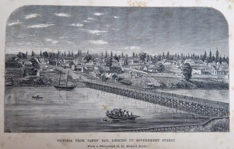 Frontispice gravé sur bois (wood engraving) “Victoria From James' Bay, Looking Up Government Street. ” d'après une photographie du Lt. Richard Roche. Edition originale. !!! !!! Du 3 octobre au 24 octobre il n'y aura pas d'expédition de colis: le libraire est en voyage. La librairie reste ouverte et nous répondrons sporadiquement aux emails. Merci pour votre compréhension. ––> From 3 October to 24 October, there will be no parcel deliveries as the bookseller will be travelling. The bookshop will remain open and we will respond to emails sporadically. Thank you for your understanding.