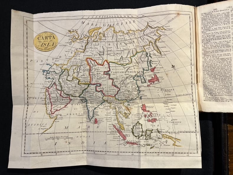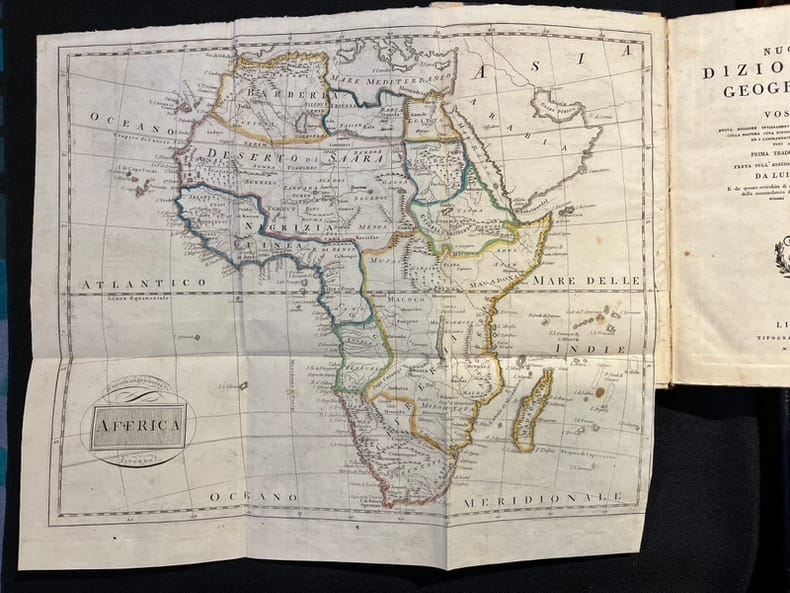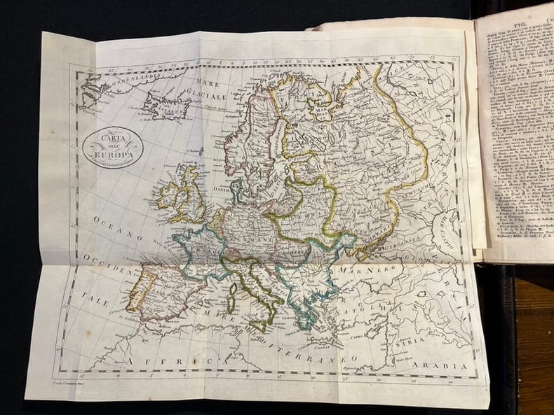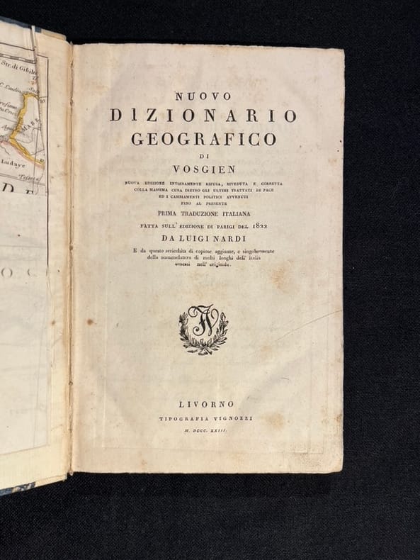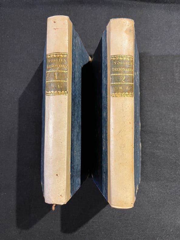 Livorno, Tipografia Vignozzi, 1823. 1 tome divisé en deux volumes de 352 pages et de la page 353 à 739, demi-vélin blanc à coins, dos lisse, pièce de titre en maroquin vert.