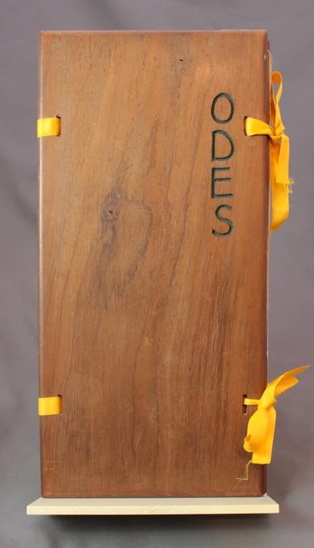 Paris, Les Arts et le Livre, 1926. Un volume édité "à la chinoise", soit 12 feuilles pliées en accordéon, imprimées d'un seul coté, formant 41 pages, couvertures de papier brun, étiquette de titre, étui formé de deux ais de bois, sur le premier, le titre est gravé et peint en vert. Deux cordons de soie ferment l'ensemble (cordons neufs).A volume published "Chinese style", that is 12 leaves folded in accordion, printed on one side, forming 41 pages, brown paper covers, title label, case formed by two wooden boards, on the first, the title is engraved and painted green. Two silk cords close the whole (new cords).