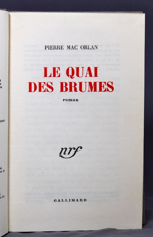 1 volume in-12° relié plein cartonnage NRF d'après une maquette de Paul Bonnet. 250 p. Un des 990 exemplaires numérotés sur alfalma marais. Rousseurs sur la tranche, faibles dans le volume, sinon très bon exemplaire.