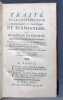 Paris, De Bure et l'auteur, 1775 [1774] ; in-8 de xlviii-328-[6] pp., 4 pl. reliure de l'époque veau porphyre, roulette dorée en encadrement sur les plats, dos lisse très orné de motifs à la grotesque, pièce verte, tranches mouchetées de vert, de blanc, de rouge.