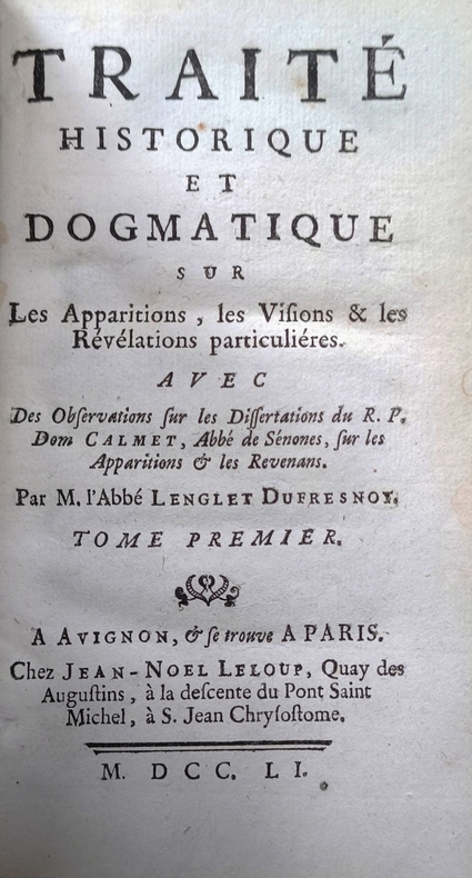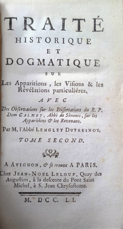 ÉDITION ORIGINALE, de ce grand classique de démonologie et de personnages mystiques. Remarquable traité, sur toutes sortes de faits extraordinaires : longs chapitres sur les apparitions, relations de l’ordre de Saint François... L’ouvrage était écrit depuis cinquante ans lorsque l’auteur se décida à le faire publier après de nombreuses corrections.