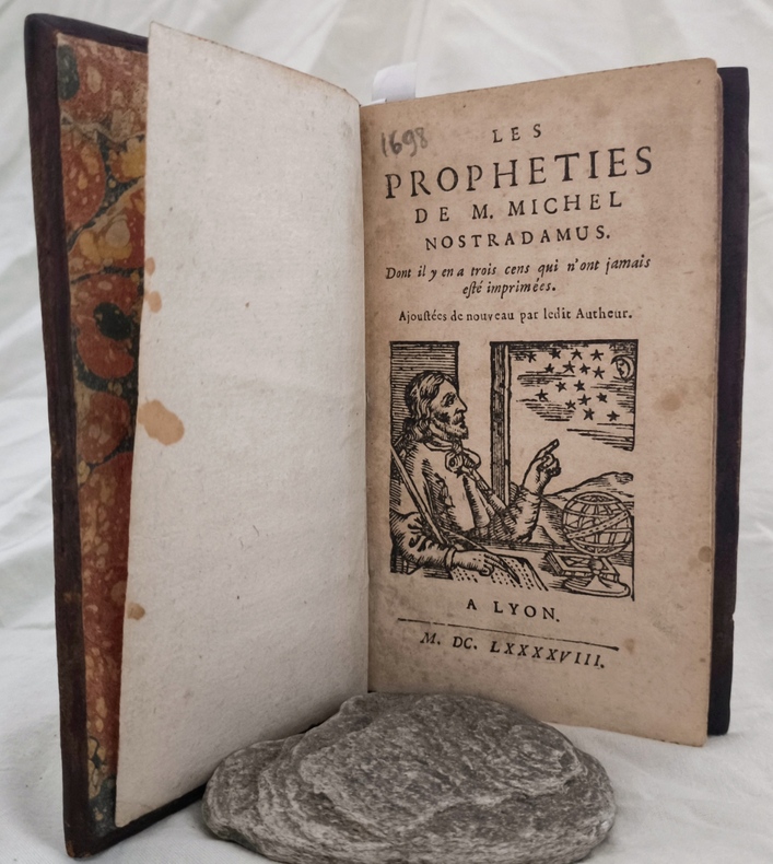 RARE édition lyonnais contenant XII Centuries complètes ; illustrée d’une vignette gravée sur le titre représentant un portrait de l’auteur.