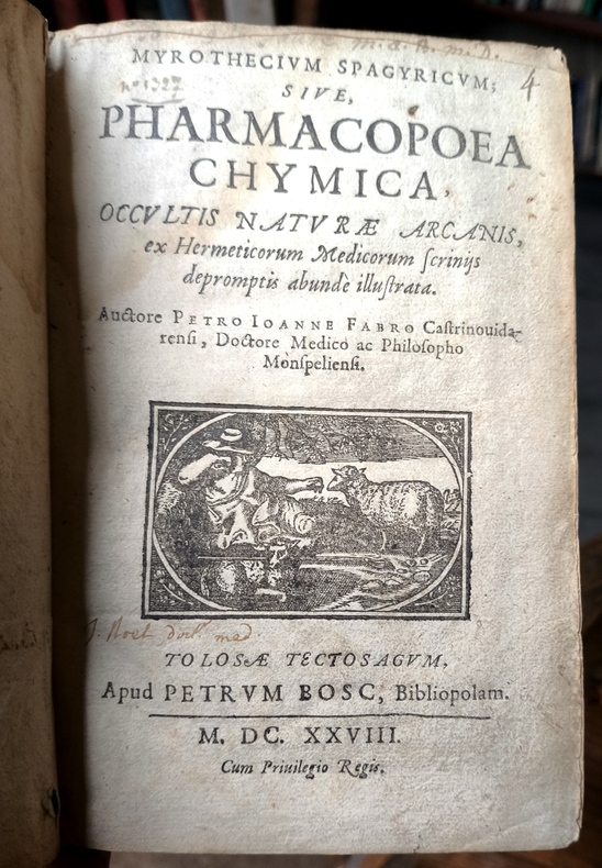 Traité de soins alchimiques. Pierre-Jean Fabre (1588-1658), médecin et alchimiste, il avait en charge la chaire et l’enseignement des recherches alchimiques. Bel exemplaire. Ferguson, 313 – Caillet, 3766