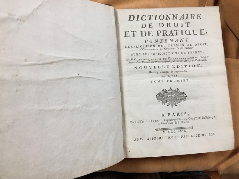 Veuve Brunet, imprimeur-libraire, Grand-Salle du Palais à la Providence et à l’Envie, Paris, 1769. Nouvelle édition revue corrigée et augmentée. 2 Tomes, Tome 1 703 pages, Tome 2 720 pages.