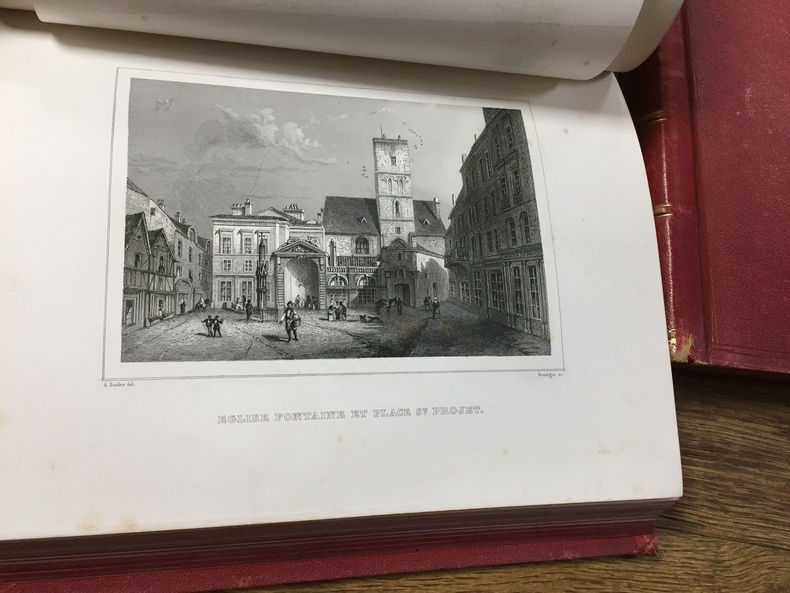 Ornée de magnifiques planches gravées sur acier par Rouargue Ainé, de vignettes dessinées par Rouargue jeune, gravées par J.Quarteley et illustrée de sujets divers et de lettres historiées. Paris et bordeaux, 1845, 2 volumes, 231 et 282 pages. Tome 1 complet, tome 2 manque une planche. Page 200 à la fin consacrées à des monuments de la Gironde.