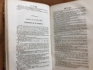 Reliure demi-cuir fauve. Dos lisse, deux pièces de titre en maroquin foncé, filets et caractères du titre dorés. Mors frottés, manque sur la coiffe de tête. Mouillures sans conséquences sur les premières pages, quelques rousseurs sur les gardes et premières et dernières pages. Ex-libris (tampon à l’encre bleue).