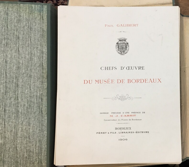 Ouvrage précédé d’une préface de M. J. Cabrit (conservateur du musée de Bordeaux). Editions Féret et Fils, libraires éditeurs, Bordeaux, 1906, 6 ff. + 100 planches + 1 ff. En feuilles, ouvrage composé de 100 planches, photos noir et blanc, précédées de la table. Phototypie d’Art L. Tibesart. Bien complet de ses planches. Sous chemise à rabats toilée vert. Les deux dernières feuilles sont tachées sans conséquence sur la planche. Chemise état d’usage et traces d’humidité. Titre doré sur le premier plat. Cinq cordons pour fermer la chemise sur six cordons sont manquants.