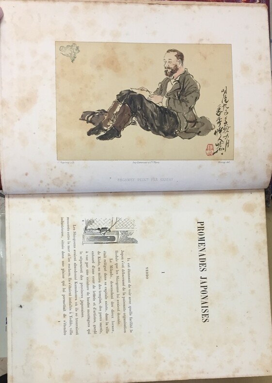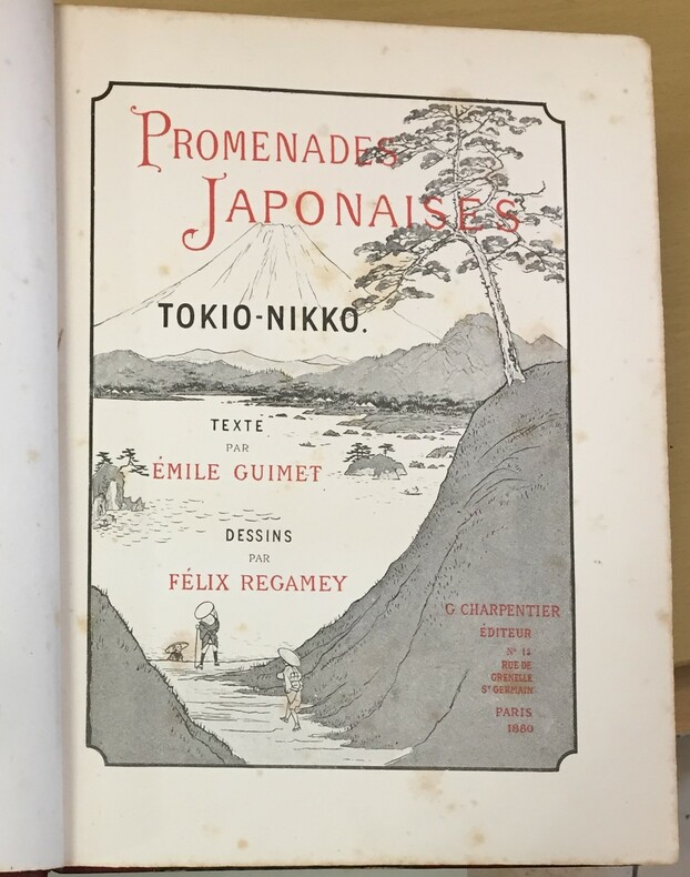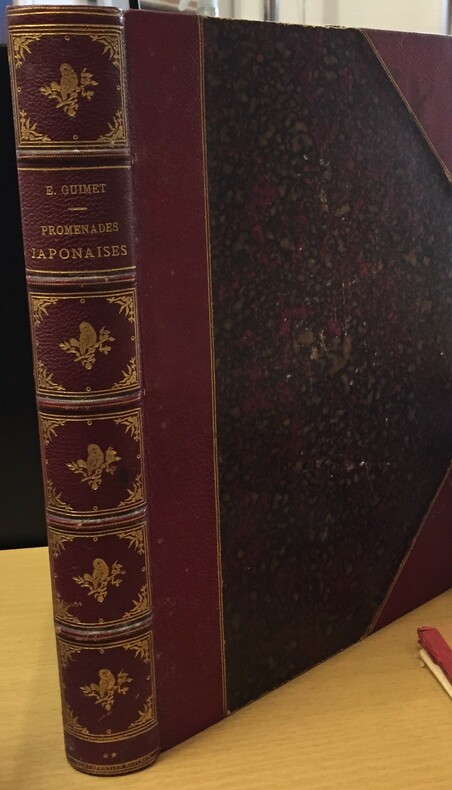 G. Charpentier Editeur, Paris, 1880, 288 pages + 37 planches hors-textes dont 1 en couleurs, 66 illustrations. dans le texte, frontispice d'après une aquarelle de Guimet. Reliure demi cuir rouge de l’éditeur à coins (nom de l’éditeur doré en coiffe de queue). Dos à 5 nerfs. Caissons à la chouette. Doubles filets sur les mors et en bordure des coins. Dorure en tranche de tête état d’usage. Nombreuses rousseurs.
