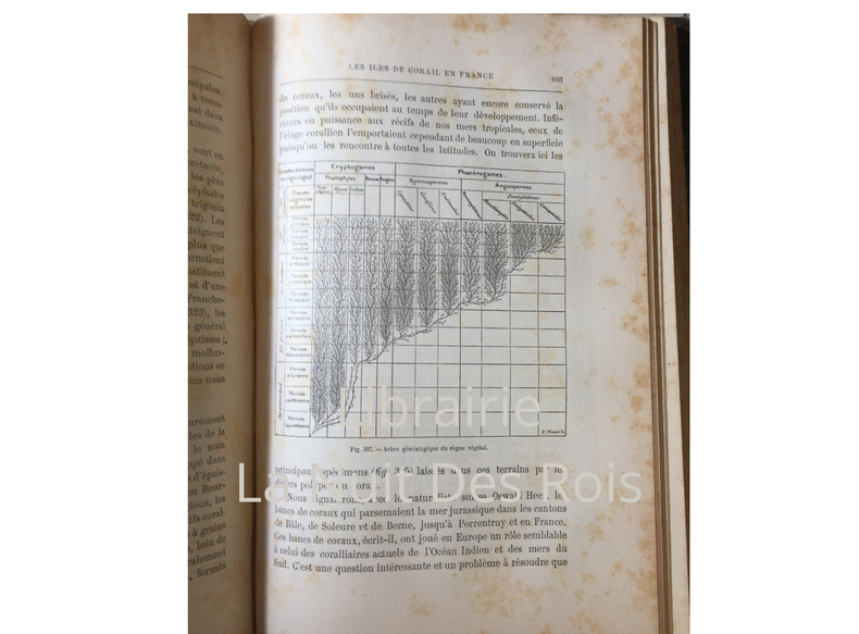 C. Marpon et E. Flammarion, éditeurs, Paris, 1886, 847 pages. In-4. Reliure demi cuir vert, dos lisse à filets et titre dorés. Ouvrage illustré de 400 gravures sur bois + 8 cartes géologiques et 5 aquarelles. Bords et coiffes frottés. Rousseurs, plus importantes sur les premières pages.