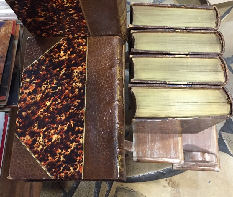 Librairie Hachette & Cie, Paris, 1885, 1890, 1881, 1882, 1883, 1883, 1885 ; 674, 839, 804, 841, 814, 694, 740 pages. Nouvelle édition revue, augmentée et enrichie d'environ 3000 gravures dessinées d'après l'Antique et de 100 cartes ou plans. 7 forts volumes, in-4. Reliure demi-chagrin à coins marron, double filets en bordure du cuir. Dos à 5 faux nerfs, 4 caissons à motifs dorés. Illustrations noir et blanc, hors texte en couleurs, têtes dorées.