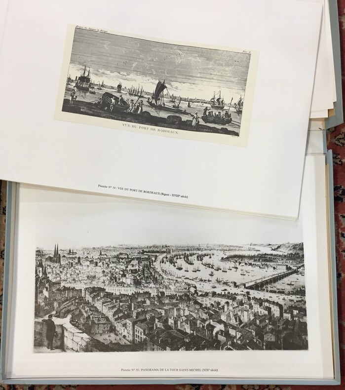Remarquable recueil de reproductions de cartes et vues anciennes de la région de Bordeaux et du Bordelais : cartes de la Guyenne, vues et cartes de Bordeaux mais aussi vues et plans de Blaye, Cadillac, Cordouan, etc... Bon état (étui un peu frotté, très bon état intérieur)