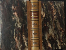 Paris, Editions du Raisin, Imprimerie Nationale, 1945 ; 3 volumes petit in-4° carrés reliés en 2 volumes. Réédition du texte de 1647 paru à Paris chez la Veuve Camusat et Pierre le Petit. Couvertures illustrées et lithographiées par Jeanne-Marie Maudot. Typographie de Maurice Darantière. Tirage limité à 150 exemplaires sur vergé blanc à la forme des moulins de Richard de Bas. Belle édition, la seule faite à l'époque moderne.UNE RELIURE HISTORIQUE DE PIERRE-LUCIEN MATIN.Maroquin noir, les plats divisés en quatre rectangles égaux entièrement réglés de bandes verticales ou horizontales alternativement en creux et en relief, créant ainsi un effet de perspective et de brillance selon l'inclinaison donnée au livre.En surimpression, sur chacun de ces quatre rectangles décorés, grand cercle au filet or adorné de deux cercles plus petits mosaïqués de maroquin noir poncé brillant, symbolisant la pureté de la langue française (et son rayonnement) que les travaux de Vaugelas ont permis d'atteindre en la dégageant de la langue des barbarismes, tournures argotiques et autres mauvais usages.Le dos sans nerfs, qui porte en petites capitales dorées prénom et nom d'auteur, titre et tomaison (selon le même cercle symbolique), est entièrement réglé de la même manière que les plats ; le décor se poursuit sur les coupes. Large bordure intérieure de maroquin noir ornée d'un décor de filets à froid dans l'esprit des plats, doublures et gardes de soie rouge unie, tête et tranches dorées sur témoins, etui double.Reliure signée P.L. Martin sur le premier contreplat, Mercher doreur sur le second.