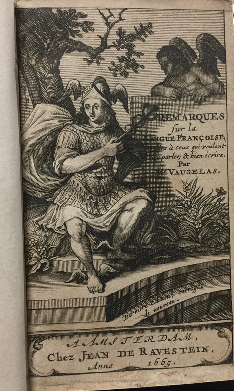 Edité à Amsterdam, Chez Jean de Ravenstein, 1665 VAUGELAS, Claude Favre (1585-1650). Petit in-12 (7 x 13 cm), longue préface + 368 + index. reliure moderne demi cuir marron, dos à 4 nerfs, entre-nerfs estampés à froid, filets dorés, pièce de titre maroquin rouge. Signet bleu. Bon état intérieur.