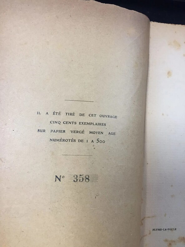 Préface de Tristan Derème. Aux éditions de la Gorgone et du Cerf-Volant, 1924, 184 pages + table des matières. Tirage sur papier vergé moyen age limité à 500 exemplaires, Ex n°358. Broché, en couverture dessin de Dukercy en vert et noir (Dukercy est le pseudonyme du dessinateur Pierre Mejecaze - 1888-1945). Aux éditions de la Gorgone et du Cerf-Volant. Couverture au papier très fin mais complète, dos bruni.