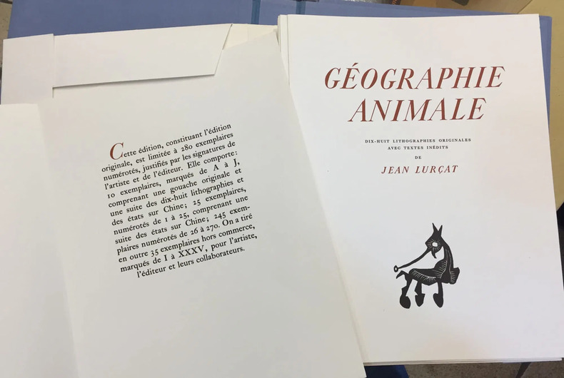 Edition originale limitée à 280 exemplaires (+ 35 exemplaires hors commerce réservés aux collaborateurs), tous signés par l'artiste et l'éditeur à la justification. Celui-ci est un des 245 exemplaires du "tirage courant". Illustré de 18 lithographies originales en couleurs de Jean Lurçat tirées dans les ateliers des Arts graphiques J.-E. Wolfensberg. Les pierres ont été poncées après le tirage. Exemplaire en parfaite condition.
