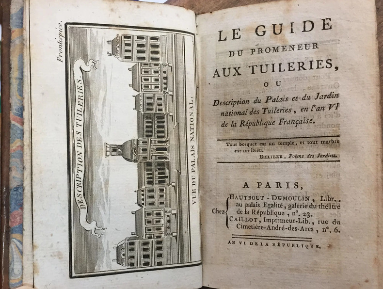 Edition originale : An VI de la République (1797), 198 pages. Petit format. Auteur Louis Philipon de La Madelaine (1734-1818) Chez Hautbout-Dumoulin libraire et Chez Caillot imprimeur libraire, Paris, An VI. En frontispice gravure "Vue du palais national". Gravures hors texte et pleine page, complet de ses gravures (La vénus n'est pas à la place indiquée dans la table). Reliure d'époque plein veau marbré, dos lisse à motifs dorés, pièce de titre. Tranches jaspées. Bords dorés. Cet ouvrage est en très bon état, mais la page 20-21 a un manque (déchirure propre, photo sur demande).