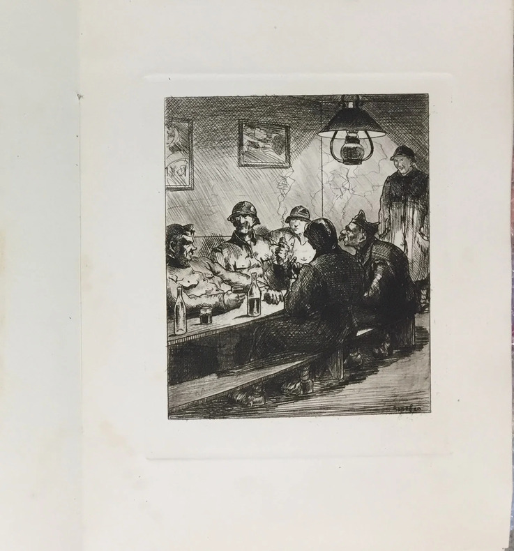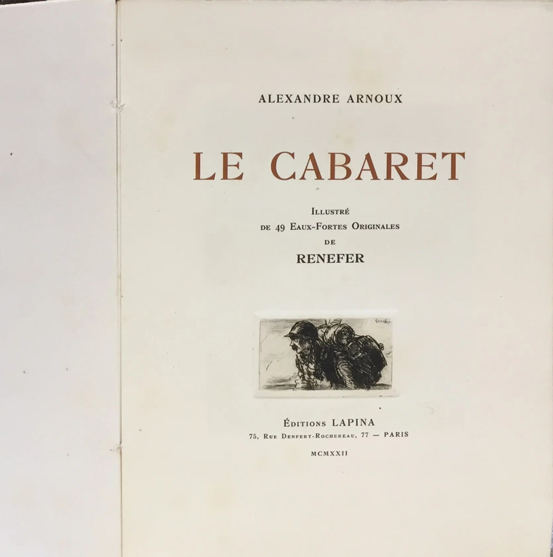 Illustré de 49 eaux-fortes Originales de Renefer, 10 hors-texte, bandeaux et culs-de-lampe. Éditions Lapina, Paris, 1922, 263 pages. Tirage limité à 472 exemplaires, exemplaire n° 429 sur papier de Hollande à la forme, pur chiffon, signé par l'auteur et l'illustrateur en justification. In-4 (22 x 28 cm), 1,9 kg. Broché, couverture crème rempliée, titre doré en relief sur le premier plat et le dos. Très bon état intérieur. Le dos se casse, la reliure est à reprendre. Sous papier cristal. Raymond Renefer est le pseudonyme de Jean-Constant-Raymond Fontanet (1879-1957), dessinateur et peintre français.