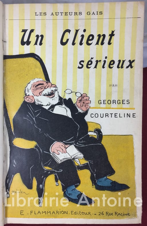9 vol. in-12 reliure uniforme demi-chagrin rouge, dos lisse orné en long, tête dorée, couvertures conservées (sauf pour "Un client sérieux" et "Les Linottes") : Lidoire et Potiron, Edition nouvelle ornée d'un portrait de l'auteur par Léopold Stévens, et de nombreuses illustrations en couleurs, 20e mille, Ernest Flammarion, Paris, s.d. - Messieurs les Ronds de Cuir, Dessins de L. Bombled, 14e mille, Ernest Flammarion, Paris, s.d. - Le Train de 8 H. 47, illustrations en couleurs d'Albert Guillaume, 40e mille, Ernest Flammarion, s.d. - Boubouroche, illustrations en couleurs de A. Barrère, Dillon, Ch. Roussel, et H. de Sta, 16e mille, Ernest Flammarion, s.d. - Ah ! Jeunesse !..., Ernest Flammarion, s.d. - Les Marionnettes de la Vie, illustrations en couleurs de A. Barrère, Ernest Flammarion, s.d. - Les Femmes d'Amis, dessins de Steinlen, 10e mille,Ernest Flammarion, s.d. - Un Client sérieux, Ernest Flammarion, s.d. - Les Linottes, illustrations de Ch. Roussel, Librairie Ernest Flammarion, s.d.