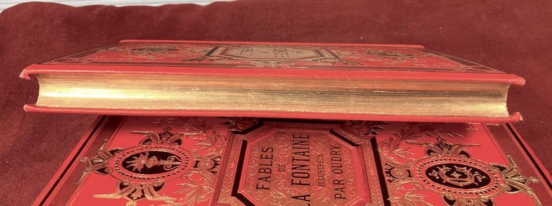 Paris Librairie de Théodore Lefèvre et Cie - Emile Guérin s.d. In-8 (h. 27 cm.) 288 pp. cartonnage rouge décoré d'une plaque dorée signée par Engel, tranches dorées. Nouvelle édition illustrée de gravures sur acier d'après Désandré, de gravures sur bois dans le texte d'après les dessins d'Adrien Marie, Fath, etc. et ornée à toutes les gaes, d'encadrements en couleurs par G. Fraipont.