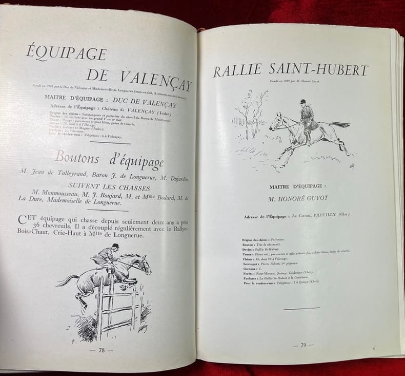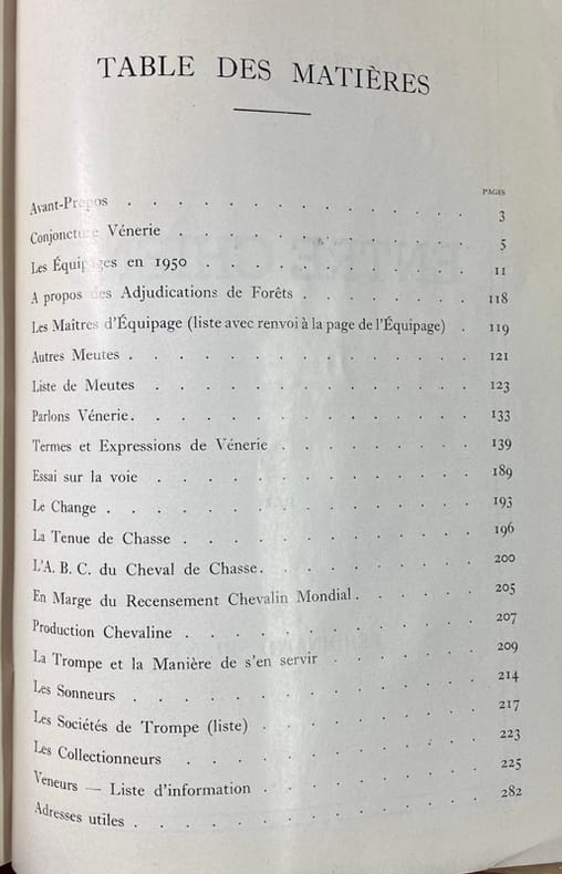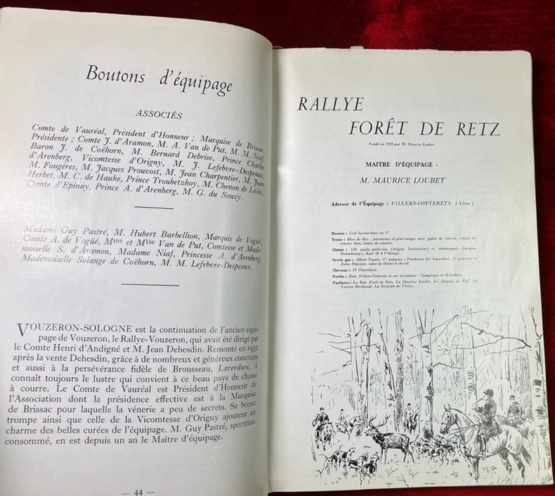 Edition originale tirée à 1700 exemplaires, illustrée de dessins in-texte en noir de Karl Reille, et de 16 reproductions de dessins d'Oudry (tirés d'une suite gravée vers 1760 par Wexelberg. 1 des 1200 exemplaires non numérotés, mais enrichi ici d'un envoi autographe de l'auteur. (Thiébaud-Mouchon 1237). Ferdinand Riant (1899-1983) est le petit-fils de Théodore Riant et neveu de Ferdinand Riant (1827-1897), ingénieurs et industriels, propriétaires en Bourbonnais des mines de Fins et de Noyant, également du château de La Salle à Vieure, de La Chaussière... où il tenait un équipage de ce nom. Dans cet ouvrage il donne tout dabord la description de 77 équipages de grande vénerie puis un tableau d'autres équipages qualifiés de "petite vénerie". On trouve à la suite un répertoire des termes et expressions de vénerie et nombreuses autres considérations sur les tenues de chasse, les Trompes, les sonneurs, les veneurs, la production chevaline. En somme un parfait portrait de la vénerie en 1950.