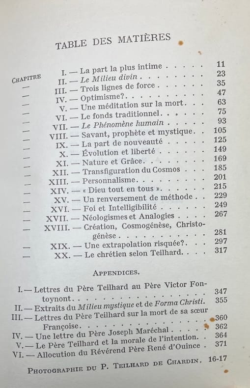 Paris Aubier 1962 in 8 (20x13) 1 volume broché, 374 pages [1], avec un portrait photographique du Père Teilhard de Chardin (sur double page), non coupé. Bel exemplaire