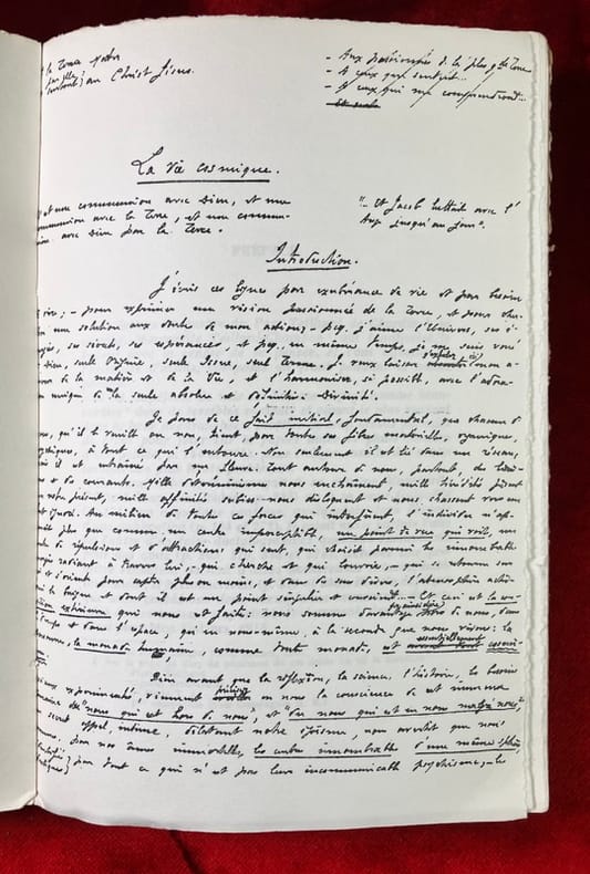 Ces Ecrits rassemblent une vingtaine d'essais rédigés, pour la plupart, au retour des tranchées alors que l'auteur servait comme caporal-brancardier, avec des introductions dues à deux théologiens, amis du Père Teilhard : Mgr Bruno de Solages et le R.P. Henri de Lubac. Ces réflexions sur la vision panthéiste, l'un et le multiple, les rapports de Dieu et du monde ne craignent pas de faire choc. Teilhard expose ses "vues ardentes".