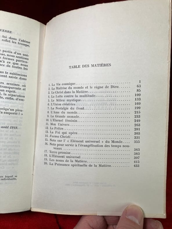 Ces Ecrits du temps de la guerre rassemblent une vingtaine d'essais rédigés, pour la plupart, au retour des tranchées, alors que Teilhard servait comme caporal-brancardier. Exaltées, mais rigoureuses, fragments d'une pensée en devenir, ces réflexions sur la vision panthéiste, le problème de l'un et du multiple, les rapports de Dieu et du monde, le thème christique, ne craignent pas de faire choc. Le ton est audacieux ; il vibre d'une "impatience prophétique". Teilhard expose ses "vues ardentes" : elles ouvrent la voie à sa théologie et sa métaphysique. Voir le sommaire sur photos jointes.
