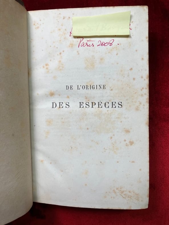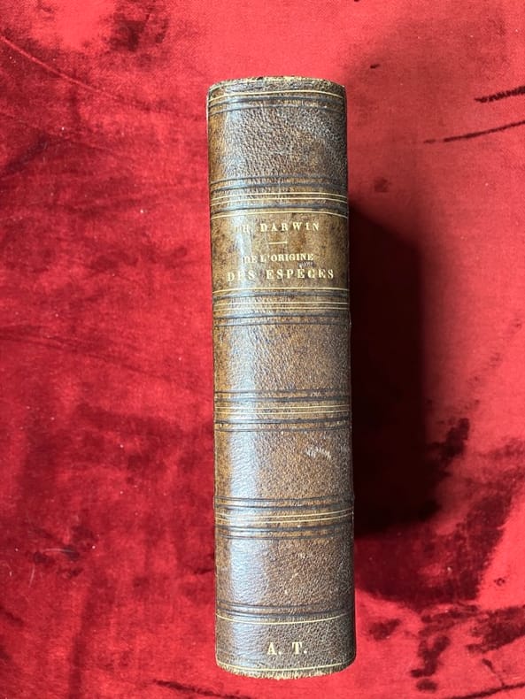 The scarce first French edition of Darwin's masterpiece, one of the most important books ever printed. The ""Origin"" started the greatest of all intellectual revolutions in the history of Mankind.There were some difficulties with the first French edition. Mlle Royer, who Darwin described as 'one of the cleverest and oddest women in Europe' and wished 'had known more of natural history', added her own footnotes. He was not really happy until the third translation by Éduard Barbier appeared in 1876. (Freeman). Freeman No 655 (Freeman does not mention the plate, which is present here).