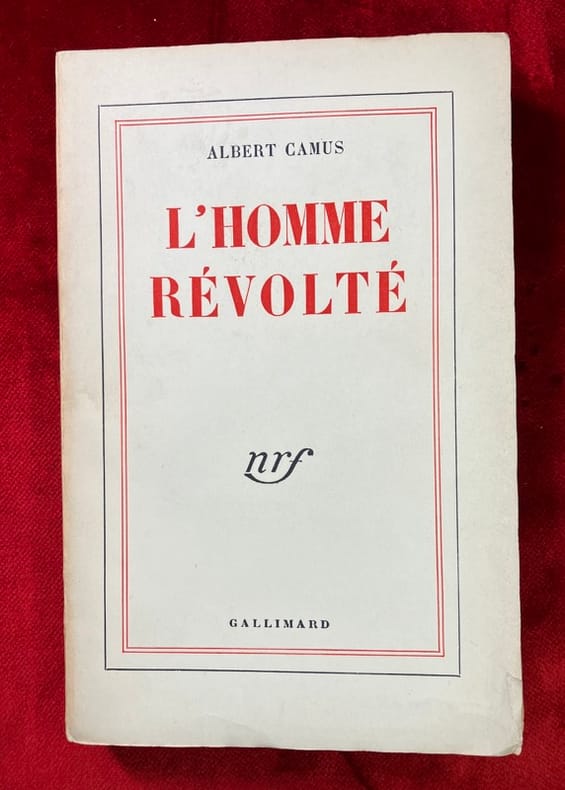Paris Gallimard 1951 382 pp. In-12. Broché. Bel état. 1 volume. ÉDITION ORIGINALE. Un des 260 exemplaires numérotés sur vélin pur fil des papeteries Lafuma-Navarre.Révolte n'est pas pur destruction. La révolte est un non vigilant.