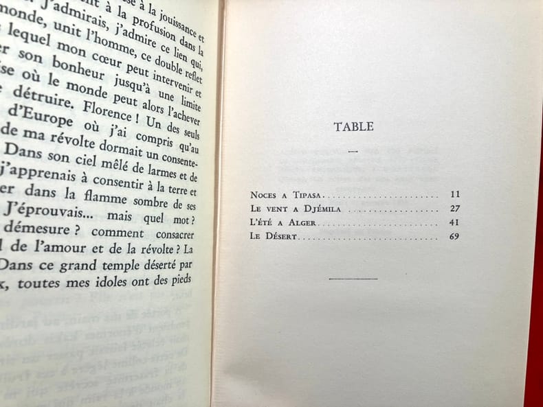 NOCES A TIPASA - LE VENT A DJEMILA - L'ETE A ALGER - LE DESERT. Classification Dewey : 844-Essais