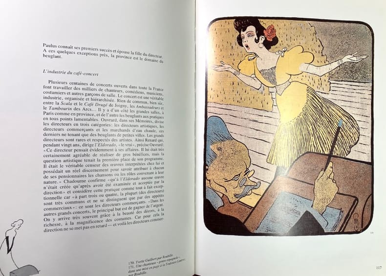 Estampe originale d'Henri de Toulouse-Lautrec de la série Le Café-Concert, éditée par les Publications de l'Estampe Originale. Très rare et belle lithographie faisant partie des 500 épreuves originales tirées sur vélin par l'imprimerie d'Edouard Ancourt. Quelques petits manques de papier angulaires Portrait par Toulouse-Lautrec d'Aristide Bruant, immense figure du music-hall de la Belle Epoque et proche ami de l'artiste, à qui il commanda des affiches de cabaret restées célèbres. Chansonnier, acteur et interprète, il acquiert sa renommée au Chat Noir avant de monter son propre cabaret, le Mirliton. Montorgueil dans sa préface à la présente série de lithographies, ne tarit pas d'éloges sur le maître incontesté de la chanson réaliste: «M. Bruant, doué d'une vigueur d'expression peu commune, et d'une originalité évidente, a pu condenser, en des chansons d'une belle allure populaire, l'âme complexe et louche des fauves.». Lautrec croque ici Bruant dans son accoutrement et son expression typique: «Veste de velours; gilet breton, foulard cramoisi et feutre à bords géants, dont tombaient ses cheveux plats. [...] les mains dans les poches et le regard durement dédaigneux». Véritable ode au café-concert, cette série réalisée par Toulouse-Lautrec et Henri-Gabriel Ibels capture l'essence de la vie parisienne et le dynamisme de ses nuits. Les planches étaient accompagnées d'une préface de l'écrivain Georges Montorgueil chantant les louanges de ces établissements injustement méprisés, qu'il qualifie de «toniques pour la vie moderne». Bien loin de l'atmosphère empesée des salles de théâtre ou de concert, ces lieux du «sans-gêne» prennent un essor considérable à la Belle Epoque et lancent des artistes d'une remarquable modernité. Les deux peintres dressent ici le portrait des vedettes de cabaret les plus célèbres de l'époque, dans le mouvement de leur «chorégraphie épileptique» ou la grâce de leurs poses. Les grands noms des cafés-concerts, dont Jane Avril, Yvette Guilbert - devenue muse de Toulouse-Lautrec - ou Aristide Bruant apparaissent sous des traits francs et assurés, inspirés des gravures sur bois japonaises. En filigrane,l'influence de l'impressionnisme est également palpable ; Toulouse-Lautrec figurant d'ailleurs régulièrement au salon des Indépendants depuis 1889. Il y livre sa vision du Tout-Paris, allant des salons de la haute société aux bordels de la capitale, en passant par les cabarets dont le Moulin Rouge, pour qui il réalise une affiche restée célèbre. Autre maître de l'affiche et du dessin, Ibels aura plusieurs collaborations avec les éditions de l'Estampe Originale, dont une série de dessins sur le cirque et réalise en parallèle de nombreuses illustrations pour des journaux populaires, dans un style vigoureux et incisif. Rare estampe en bel état de conservation, qui renvoie aux fastes du "Paris by night fin de Siècle". - Photographies et détails sur www.Edition-Originale.com -
