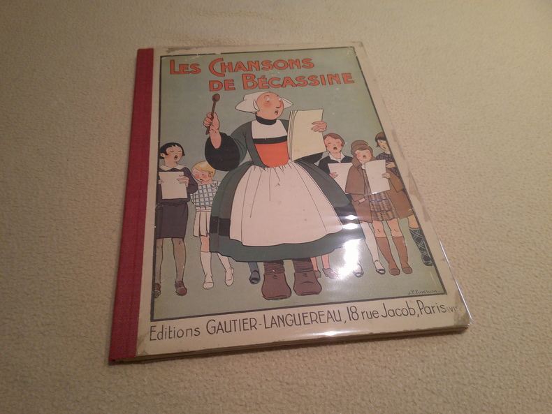 Dans Les chansons de Bécassine, Caumery n'intervient pas puisqu'il s'agit d'un recueil de chansons pour enfants dont l'auteur est Ch. Magué sur des compositions originales de F. Darcieux. Pinchon y met en oeuvre tout son talent et chaque double-page est illustrée de petites scènes en couleur (quadrichromie) se mêlant aux partitions. .......Réunit : P. 4 - Ma naissance, inc. Je somm's né' tout près, P. 6 - Le double baptême, inc. Annaïk, c'est mon nom, P. 8 - Les oeufs de Pâques, inc. Le Sam'di Saint, P. 10 - L'alphabet vivant, inc. Pour m'enseignée l'écriture, P. 12 - L'oncle Corentin, inc. Prenant son grand fusil, P. 14 - Les cent métiers de Bécassine, inc. J'ai fait cent métiers dans ma vie, P. 16 - Berceuse pour endormir Loulotte, inc. Il est tard, Louloutte ma fille, P. 18 - Ce bon Monsieur Proey-Minans, inc. Monsieur Proey-Minans compt', P. 20 - J'apprends l'anglais, inc. Si j'ons appris quéqu's mots, P. 22 - Les petits plats de Bécassine, inc. J'suis pas mauvaise à la cuisine, P. 24 - Le Noël de Bécassine, inc. Malgré le vent qui bruit, P. 26 - Mes voyages, inc. Oui, ma Doué, j'ai couru le monde, P. 28 - Zidore et Bécassine, inc. Quoi, Zidore, est-c'ben toi, P. 30 - Chanson basque, inc. Pour vous, mes bons amis.................Edition Originale...............en bon état ( good condition), bon état