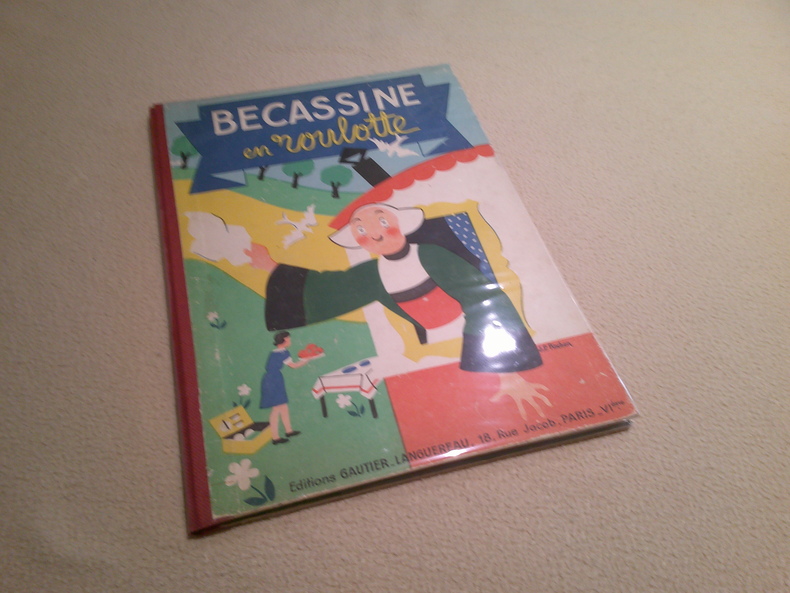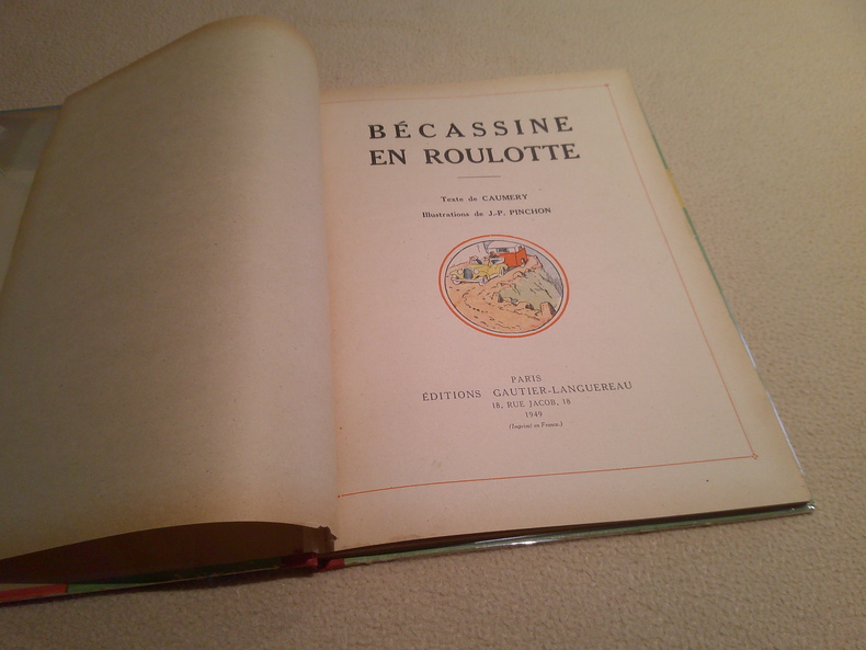 Paris Editions Gautier-Languereau 1951 in 4 (31x22,5) 1 volume reliure de l'éditeur, dos muet de percaline rouge, plats cartonnés illustrés en couleurs, 48 pages, nombreuses illustrations en couleurs de J-P. Pinchon. Au verso de la page de titre: Bécassine en roulotte, L'alphabet de Bécassine, et Bécassine maitresse d'école sont les derniers titres des ouvrages mis en vente. Bel exemplaire ( Photographies sur demande / We can send pictures of this book on simple request )