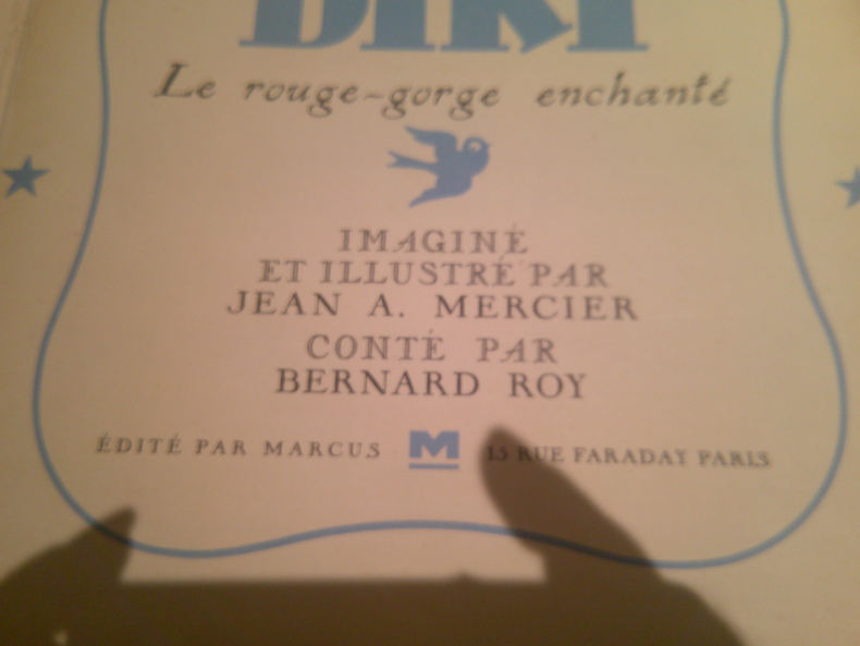 Paris MARCUS 1945 1 Imaginé et illustré par Jean-Adrien Mercier, conté par Bernard Roy. Paris, Marcus, 1945, in-12 oblong, cartonné, couverture illustrée en couleurs d'un rouge-gorge, n. ch.