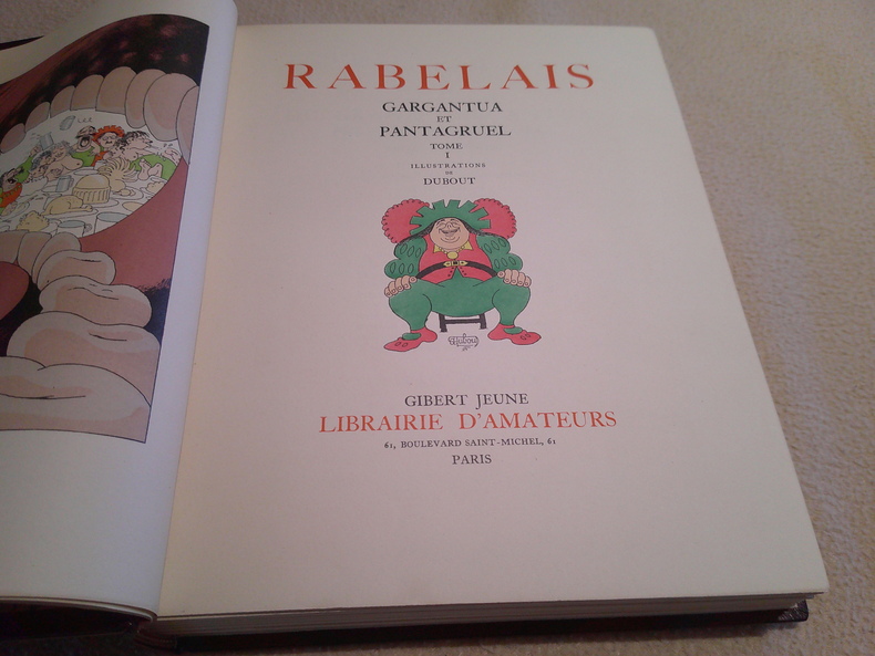 Gibert Jeune -Librairie D Amateurs -Boulevard Saint Michel -Paris - 1957 -2 Volumes -Complet - 335 et 338 pages - Le premier ,segond ,tiers ,quart et cinquième livre - Illustrations couleurs dans le texte D'Albert Dubout - Tables in finé - Volumes in quarto ,plein maroquin bordeaux sous boitages ,dos à cinq nerfs -Couvertures conservées - Excellent état .