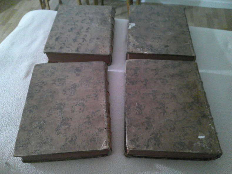 Chez Brunet A Paris, Chez Brunet, Libraire, 1775. 6 volumes In-4 reliés demi-basane blonde de l'époque, dos à 5 nerfs ornés, motifs dorés, pièces de titre maroquion rouge et pièces de tomaison maroquin vert, tranches rouges.Tome 1 : 1ff blanc, fx-titre, frontispice, titre, XIII + 768 pages, 2 ffblancs. Tome 2 : 22ff blancs, fx-titre, titre, 854 pages, 22 ff blancs. Tome 3 : 2 ffblancs, fx-titre, titre, 704 pages, 22 ffblancs. Tome 4 : 22 ffblancs, fx-titre, titre, 852 pages, 22ffblancs. Tome 5 : 1ffblanc, fx-titre, titre,901 pages, 22ffblancs. Tome 6 : 2ffblancs (les premier avec manque), titre, 560 pages, CCXXXII pages pour la table, 2ff blancs. Menus défauts aux reliures : petit accroc en coiffe des tomes 1 et 6, un mors supérieu fendu au tome 6, un mors inférieur fendu aux tomes 1 et 2. Mouillure au bas des deux premiers feuillets du tome 1. "Jacques-Christophe Valmont de Bomare, né le 17 novembre 1731 à Rouen et mort le 24 août 1807 à Paris, est un naturaliste français, connu notamment pour avoir donné une encyclopédie en 6 volumes prépondérante dans lhistoire naturelle des années 1760, le Dictionnaire raisonné universel dhistoire naturelle. Il noue des relations avec Buffon, Daubenton, Réaumur, Nollet, Rouelle, D'Holbach, D'Alembert et Diderot, qui laideront à suivre la carrière à laquelle il se destinait, il se consacre, pendant plusieurs années, à létude des sciences naturelles. Il nourrit pour ce domaine une telle passion quil conçoit dès ce moment lidée de donner des cours dhistoire naturelle. Il communique ce projet au marquis dArgenson, alors ministre de la Guerre, qui lui donne la commission de voyager au nom du gouvernement. Valmont visite les principaux cabinets de lEurope, examine les ateliers métalliques, les gisements des mines et la profondeur de leurs excavations, pour rassembler les éléments et les matériaux de ses leçons. Il propose à son retour, en 1756, un cours sur les différentes branches de lhistoire naturelle, cours renouvelé jusquen 1788. En 1767, il devient membre de la Société royale dagriculture de Paris. En 1769, il accepte la direction du cabinet de physique et dhistoire naturelle du prince de Condé à Chantilly". Exemplaire complet, très propre et bien relié.