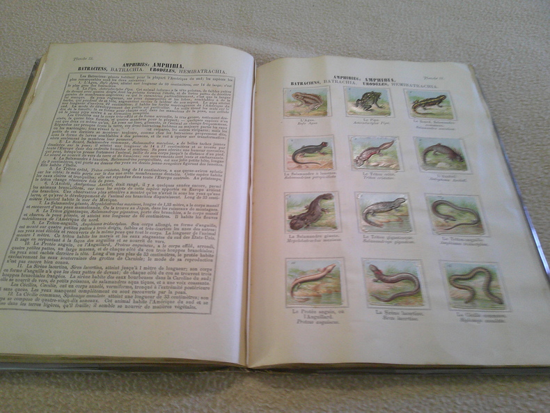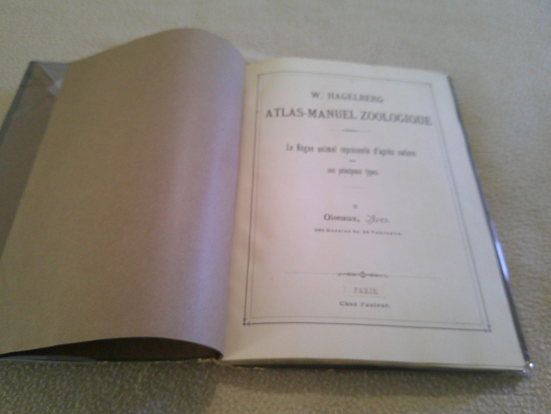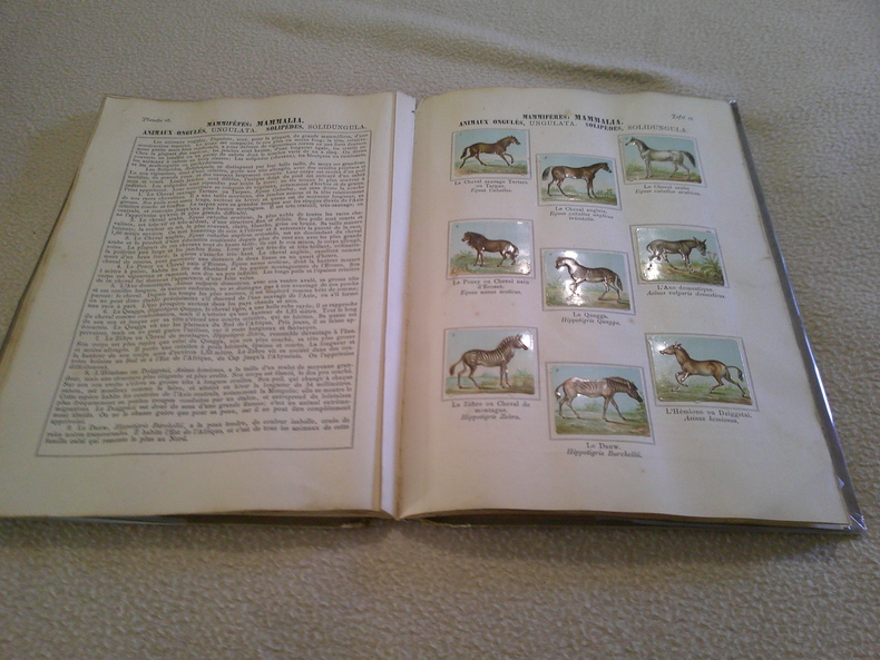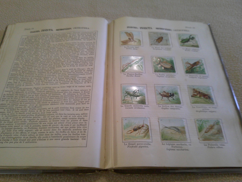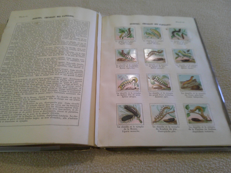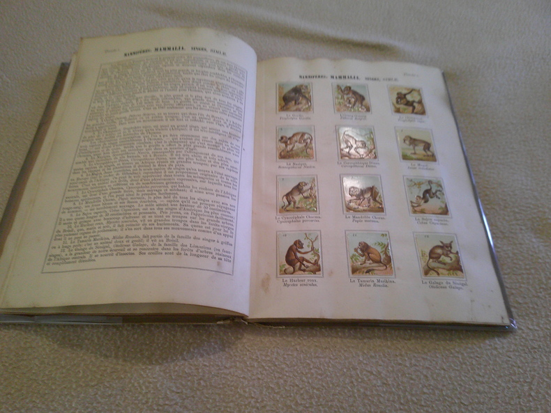 1900 Paris, sans date ( vers 1900) ; album in-8° oblong, demi-basane brune à coins muette . Nous posssédons au total 1062 images en couleurs contrecollées sur 91 feuillets, le texte sur papier mince de petite format ( in-12°), est contrecollé sur la page en regard de chaque planche.