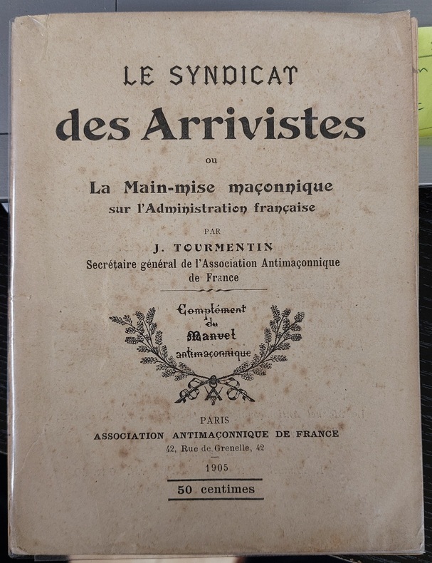 association antimaçonnique de france 1905 - petit livre paier de 192 pp un peu fragilisé, déchiré au niveau du mors(la page de titre tient surtout grace à la protection plastique + déchirure du papier sur cette couverture et rousseurs ) - sinon l'intérieur est correct - une curiosité