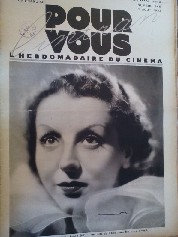 1933 1933 Paris Réaumur 1933 1 normal d'usage. Cahier 15[pp] 3 Aout 1933 n°246Jeunes artistes françaises : Renée Saint Cyr interprète de "Une seule fois dans la vie" Chez les jeunes filles en uniformes