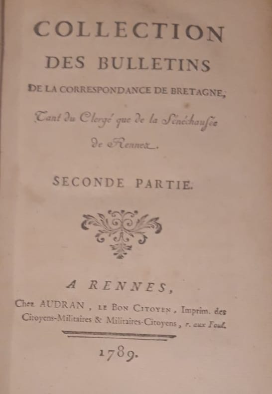 1789 1789 Paris Audran , Le Bon Citoyen 1789 1 in 12 Reliure Demi-Basane dos lisse orné, pièce de titre Document original historique des Etats Généraux de 1789 du point de vue de la Bretagne