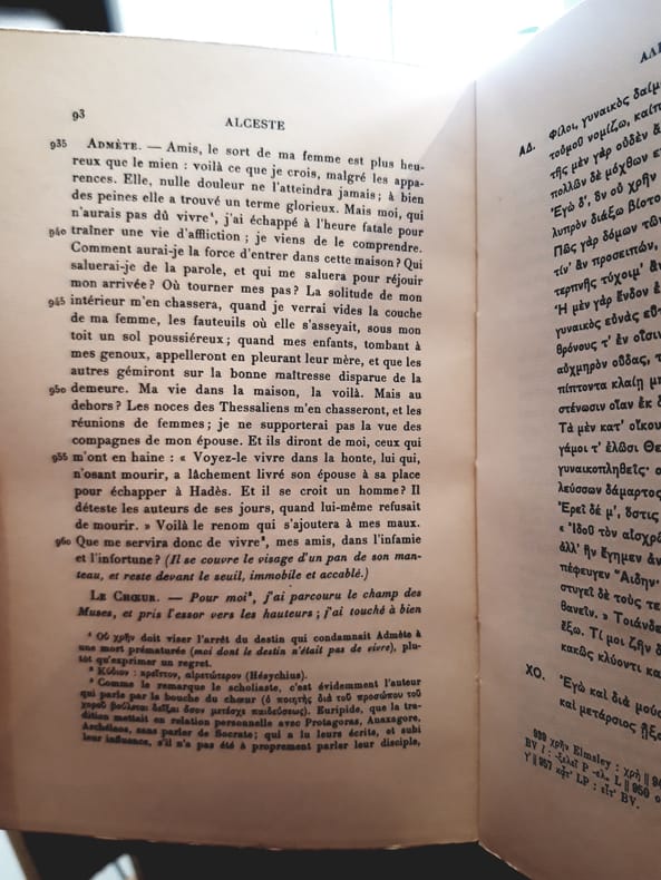 L’Antiquité grecque était prolixe en légende, même à propos de ses poètes. Ainsi on racontait qu’Euripide était né le jour même où Eschyle combattait à Salamine et que Sophocle triomphait au péan. Pourtant, à la différence de ces deux illustres prédécesseurs, l’auteur d’Hippolyte ne connut guère la faveur populaire. Il n’obtint à Athènes que quelques fois le premier prix et s’exila, à la fin de sa vie, à Pella, auprès du roi Archélaos, en partie pour fuir les quolibets de ses concitoyens, notamment d’Aristophane. Sa gloire fut en grande partie posthume, grâce à son fils Euripide le jeune, qui consacra la majorité de son talent à faire jouer les pièces de son père. Si Euripide a écrit plus de 90 pièces ainsi que des poèmes lyriques et des élégies, seules 19 de ses pièces nous sont parvenues, en comptant l’énigmatique Rhésos. L’édition de Louis Méridier rassemble en deux volumes Le Cyclope, Alceste, Médée, Les Héraclides, Hippolyte, Andromaque et Hécube. La riche introduction du tome I fournit une biographie commentée et mise en question, de l’auteur, ainsi qu’une présentation minutieuse de l’histoire, complexe, des manuscrits. Chaque œuvre est en outre précédée d’une notice proposant de judicieuses pistes de lecture, notamment quant au genre de la pièce ainsi que de son argument.