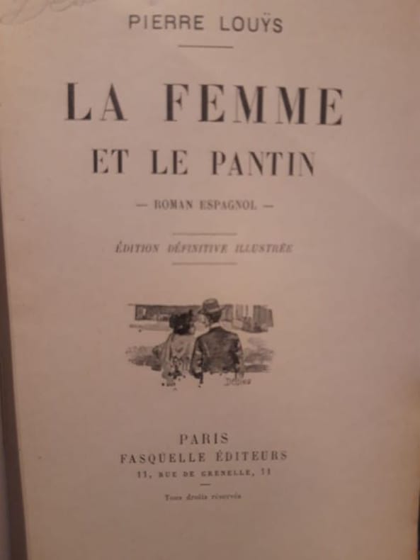 La femme et le pantin collection Baldi " les contemporains " broché, reliure superieur: demi cuir, 4 nerfs, 200 x 160 mm, 163 pp, tirage de exemplaires numérotés, le nôtre (n° 2155) sur papier vergé de Voiron, intérieur frais, bel état général