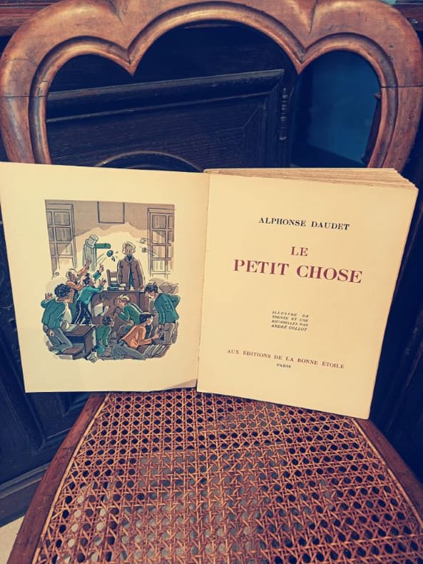 LE PETIT CHOSE. LEMERRE PARIS 1926Histoire d'un enfant". Bandeaux et culs-de-lampe. 402 pp PETIT IN8 tres belle reliure demi chagrin dos à nerfs tres decoré tranche superieure dorée