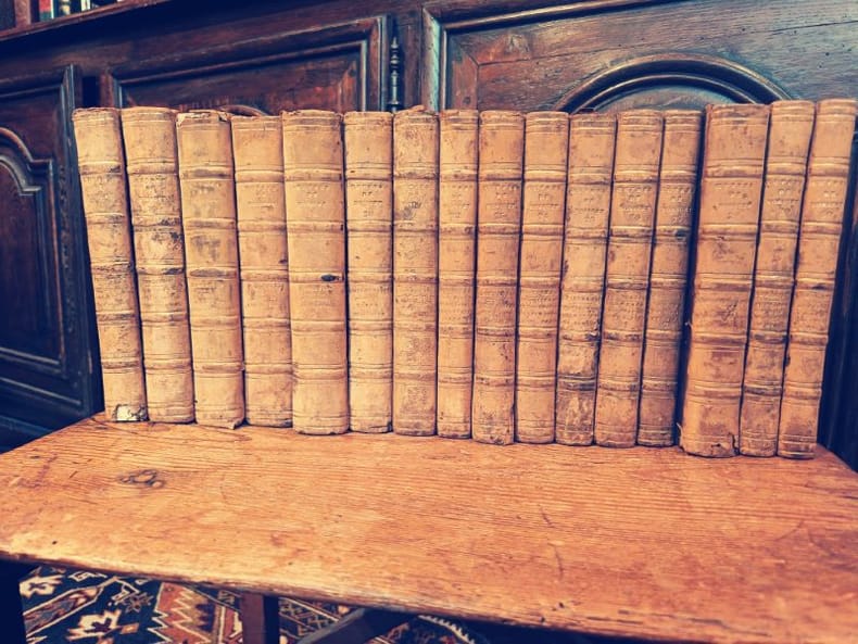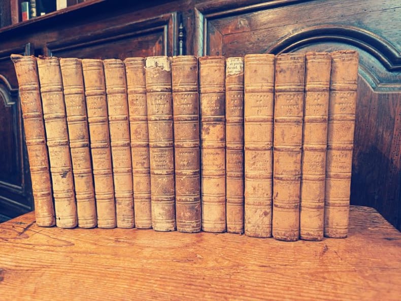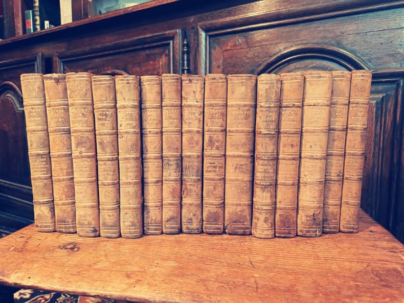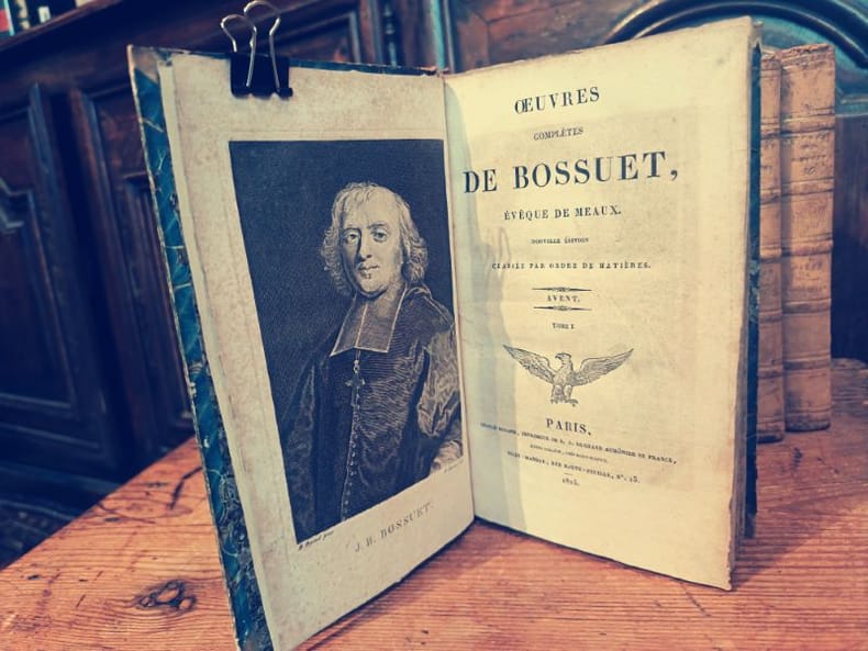 Paris, Beaucé-Rusand 1825 59 in -8 demi cuir Nous présentons une véritable rareté bibliophilique : l'ensemble absolument complet des 58 volumes des Œuvres Complètes de Jacques-Bénigne Bossuet, dans la célèbre édition de Beaucé-Rusand (Paris, 1825-1828).Pourquoi est-ce exceptionnel ? L'intégralité est le graal du collectionneur. Cet ensemble inclut le précieux dernier tome, renfermant les textes et fragments inédits de Bossuet, ouvrant une fenêtre unique sur sa pensée intime – un atout majeur que les séries incomplètes ne peuvent offrir.L'état extérieur reflète près de deux siècles de vie. La reliure, bien que d'époque, est clairement abîmée (dos, mors et coins usagés, manques de cuir). Elle raconte le grand voyage de ces livres, conférant à chaque tome une patine unique qui plaît aux amateurs d'authenticité.La Fraîcheur Préservée (Intérieur) : C'est le contenu qui compte ! Le corps d'ouvrage est remarquablement frais. Le papier est sain malgré quelques légères rousseurs habituelles pour l'époque.Le Défaut Notoire : Il est à noter des manques nets et irréguliers dans le bas des marges sur certaines pages, probablement dû à l'activité de rongeurs ou à une exposition passée. Cependant, il est crucial de souligner que le texte n'est pas, ou très peu, affecté. L'intégrité de l'œuvre est préservée, seule la marge, non essentielle, a été altérée.Malgré les marques du temps, cette série complète offre l'opportunité d'une vie pour le collectionneur et l'érudit.Vous achetez l'exhaustivité de la pensée de Bossuet pour un prix ajusté en raison de l'état esthétique. C'est l'accès à la connaissance suprême qui est valorisé, et non la perfection cosmétique.Appel à l'Action : Ne laissez pas ces 58 tomes intégraux, avec leurs précieux inédits, vous échapper à cause d'une usure extérieure. Saisissez cette chance unique d'acquérir l'histoire, ici et maintenant.