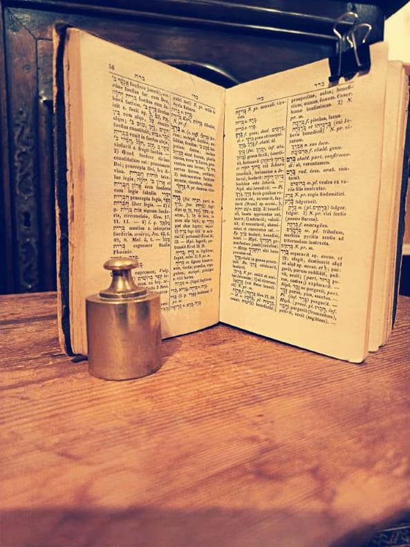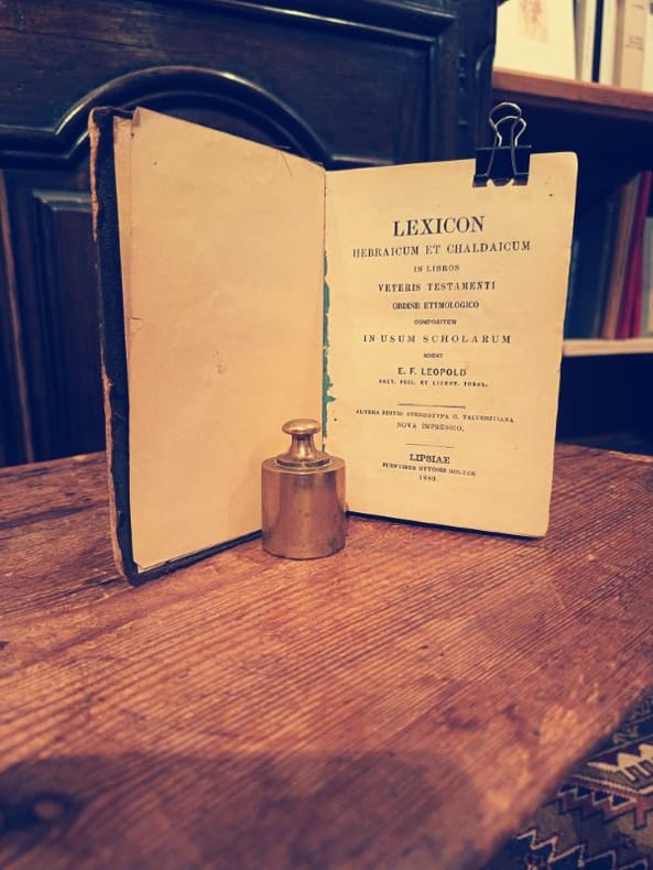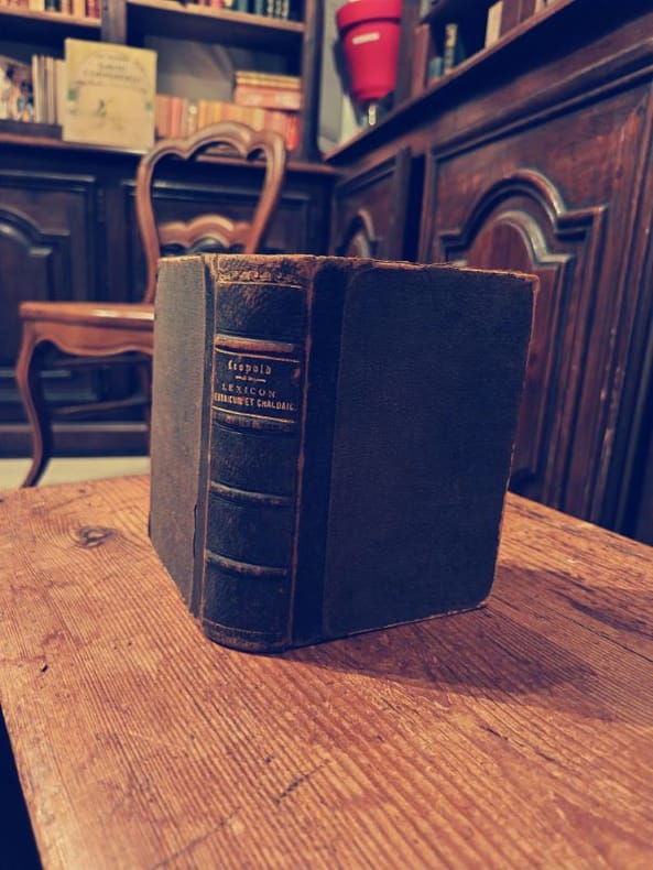 Deuxième édition (EO: 1832) de ce lexique de lhébreu et le chaldaïque rédigé en latin dû à Ern. Frid. Leopold. Ce dernier est également lauteur dun lexique sur le grec et le latin intitulé Lexicon graeco-latinum manuale (1869). Ce lexique, dont le titre en latin peut être traduit par «Lexique hébreu et chaldaïque des livres de l'ancien testament classé par ordre étymologique, à l'usage des écoles», a donc pour objectif de faciliter la lecture des livres de lancien testament rédigés en hébreux et en chaldaïque. Ces langues, bien que faisant partie de la famille sémitique, constituent deux langues bibliques distinctes: lhébreu et le chaldaïque. Le terme de chaldaïque est ancien et quelque peu erroné. En effet, il correspondant à ce quon appelle de nos jours l'araméen biblique, cest-à-dire la langue dans laquelle ont été composés, du Ve au IIe siècle avant notre ère, quelques parties de certains livres de la Bible, comme ceux de Daniel, de 'Ezra (Esdras) et de Ne'hemiah (Néhémie). Il faut préciser que les langues originales de la Bible sont laraméen biblique (ou chaldaïque), lhébreu biblique et le grec. Leopold classe les mots de son lexique par ordre étymologique et joint au début une explication des abréviations utilisées dans celui-ci. Chaque mot du lexique apparaît en alphabet hébreu ou araméen, le premier étant directement hérité du second, puis accompagné de sa définition en latin. Bel exemplaire de ce lexique de lhébreu et du chaldaïque entièrement rédigé en latin. 1 volume 16-mo (144 x 106 mm) of : VIII (title, preface, abbreviations); 456 pp. Contemporary red half cloth, smooth spine titled in gold, boards covered with marbled paper. Second edition (EO: 1832) of this lexicon of Hebrew and Chaldee written in Latin by Ern. Frid. Leopold. The latter is also the author of a lexicon on Greek and Latin entitled Lexicon graeco-latinum manuale (1869). This lexicon, whose title in Latin can be translated as "Hebrew and Chaldean Lexicon of the books of the Old Testament classified by etymological order, for the use of schools", aims to facilitate the reading of the books of the Old Testament written in Hebrew and Chaldean. These languages, although part of the Semitic family, constitute two distinct biblical languages: Hebrew and Chaldaic. The term Chaldee is old and somewhat erroneous. In fact, it corresponds to what is nowadays called Biblical Aramaic, that is to say, the language in which some parts of certain books of the Bible, such as those of Daniel, 'Ezra (Ezra) and Ne'hemiah (Nehemiah), were composed from the fifth to the second century BC. It should be noted that the original languages of the Bible are Biblical Aramaic (or Chaldean), Biblical Hebrew and Greek. Leopold arranges the words in his lexicon in etymological order and attaches an explanation of the abbreviations used in it at the beginning. Each word in the lexicon appears in the Hebrew or Aramaic alphabet, the former being directly inherited from the latter, and is accompanied by its definition in Latin. A fine copy of this lexicon of Hebrew and Chaldee, written entirely in Latin.