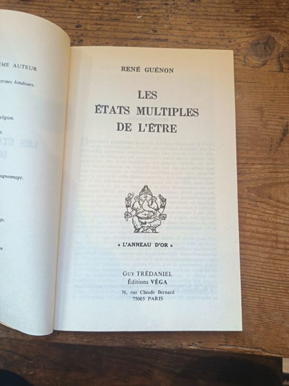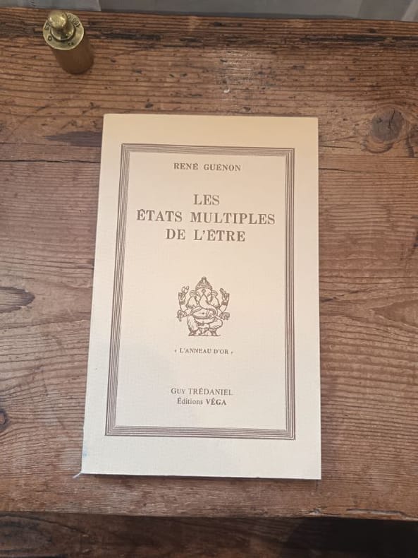 Paris, Guy Trédaniel Editeur 1989 1 in -8 Broché couverture Illustrée 106 [p.p] Ceci est bien plus qu'un essai de philosophie ; c'est un texte fondateur de la pensée traditionnelle, une somme métaphysique qui défie la compréhension occidentale moderne. René Guénon, figure tutélaire de l'ésotérisme et du pérennialisme, livre ici une analyse implacable des possibilités de manifestation de l'Être au-delà de l'individualité humaine. C'est l'ouvrage essentiel pour quiconque souhaite dépasser les limites du monde sensible.L'édition Trédaniel de 1989 est une réédition cruciale qui a permis à cette œuvre majeure de retrouver son public en fin de XXe siècle. Ce livre est la porte d'accès à la compréhension des notions d'états supérieurs et des plans de conscience. Guénon y développe les implications les plus profondes de la doctrine hindoue et des principes universels des traditions.L'acquisition de cet ouvrage est un investissement dans l'élévation intellectuelle et spirituelle. Sa lecture est exigeante, mais sa récompense est la clarté suprême sur les questions de l'identité, de l'au-delà et des possibilités post-mortem. Pour le collectionneur d'ésotérisme ou de métaphysique, posséder Les États Multiples de l'Être est le signe d'une quête sérieuse et d'une bibliothèque qui s'ancre dans les sources authentiques du savoir traditionnel.Offrez-vous la clarté. Ce livre est la boussole nécessaire pour naviguer dans l'Infini.