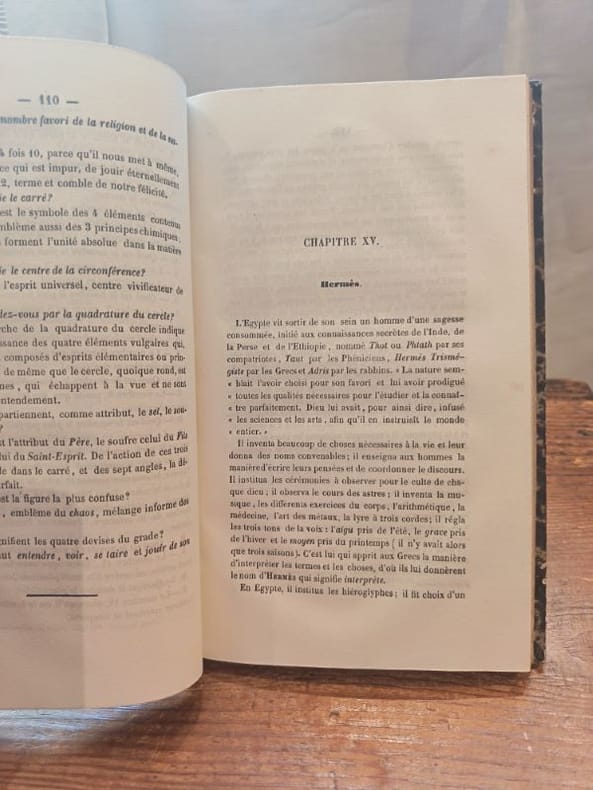 Paris, E.Dentu 1853 1 in -8 demi chagrin 267 [p.p] Ceci est un ouvrage essentiel qui fait autorité et qui a marqué une étape décisive dans l'étude des liens profonds entre les doctrines initiatiques. J.M. Ragon est une figure majeure et incontournable de la Maçonnologie du XIXe siècle. Son génie fut d'établir les connexions fondamentales entre la symbolique des Loges et les grands courants de l'occultisme et de l'ésotérisme de son époque.Le savoir occulte révéléL'édition de 1853 par Dentu est un témoin direct et fondateur de la renaissance ésotérique du milieu du XIXe siècle. Elle est particulièrement précieuse car elle offre l'œuvre en sa forme originelle, avant les nombreuses rééditions. Ragon y révèle comment la structure des Loges dissimule des clés occultes et des principes ésotériques puissants, faisant de la Maçonnerie un véritable Art Royal au sens le plus profond.Un investissement dans l'initiation pureL'acquisition de ce volume est un investissement direct dans la compréhension de l'histoire ésotérique française. C'est le livre qui permet de franchir le seuil entre la simple lecture du Rite et l'accès à sa signification la plus haute, explorant les correspondances avec les grands Mystères. Pour le collectionneur, posséder cette édition de 1853, c'est s'assurer d'une source authentique et d'un guide spirituel dont l'influence perdure sur l'ensemble de l'ésotérisme occidental.Ne cherchez plus la connexion entre la Loge et l'Occultisme. Ce livre est la réponse. Offrez-vous le savoir originel de Ragon.